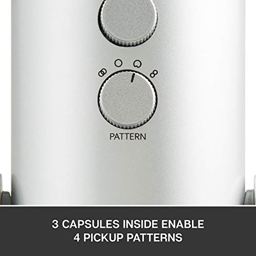 Blue Yeti USB Mic for Recording & Streaming on PC and Mac, 3 Condenser Capsules, 4 Pickup Patterns, Headphone Output and Volume Control, Mic Gain Control, Adjustable Stand, Plug & Play - Silver