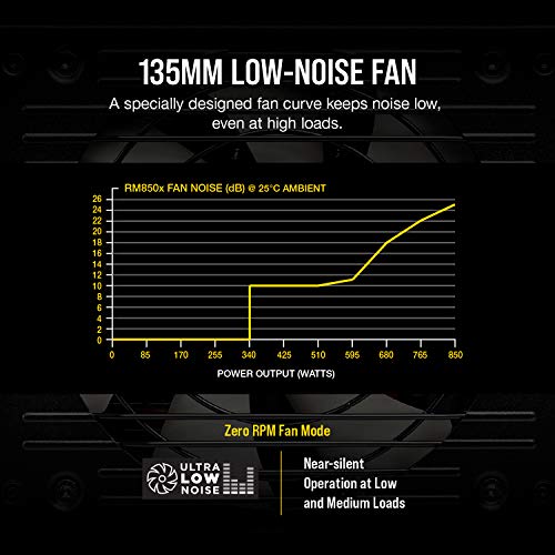 Corsair RMX Series, RM850x, 850 Watt, 80+ Gold Certified, Fully Modular Power Supply (Low Noise, Zero RPM Fan Mode, 105°C Capacitors, Fully Modular Cables, Compact Size) Black
