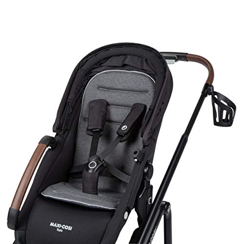 Details: Once you reach your daily step count by chasing the kids and you're ready to leave the house, It helps to have the flexibility the tayla travel system provides every time you head out for a stroll or ride in the car. It all starts with 4 recline positions for customized comfort. The reversible stroller seat sits upright or reclines back - and faces you or the world ahead. That way, baby can lie back and rest in the soft, plush fabrics, while you daydream of doing the same. And curious toddlers can sit upright to face you and exchange high fives, or the cashier as you exchange an outgrown onesie. Then there's the little things that help change your day for the better. The all-wheel suspension with smoothride tire technology keeps those bumps in the road at a minimum, so your napping child stays resting. And the lockable swivel wheels make it easy to transition from sidewalk to grass. Let's not forget sun protection. We have you covered with the 360 Degree MaxShade extendable canopy that covers the entire seat. When it comes to storage, The extra-large basket offers plenty of room for diapers, wipes, clothes, and snacks you can quickly reach at a meltdown's notice. For added comfort as seasons change, the reversible seat cushion features breathable mesh for warmer days, and cozy knit for cooler days. For peace of mind on every ride, we've included The Mico XP infant car seat that exceeds federal safety standards. The adjustable base features our new self-retracting maxilock LATCH technology for a quick, secure installation with visual Red-to-green tightness indicators to confirm correct base installation. Because safety is not a guessing game.Nbsp; another way we've designed the car seat to keep your child as comfortable as possible is with our purecosi fabric. It's free of flame-retardant chemicals and protects your child in a way that's both pure and cozy. The tayla travel system offers the versatility you need, without having to compromise comfort.
