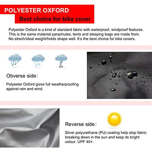 - Fuerte e impermeable para proteger su bicicleta de la lluvia, el polvo, el sol y los arañazos