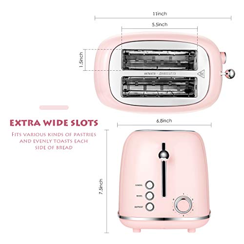REDMOND - Tostadora de 2 rebanadas de acero inoxidable retro para bagel, cancelación, función de descongelación y 6 ajustes de sombra de pan, ranura extra ancha y bandeja extraíble para migas, rosa, ST028