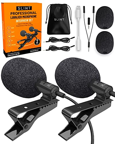 Slint Paquete de 2 micrófonos de solapa con condensador omnidireccional Blogging