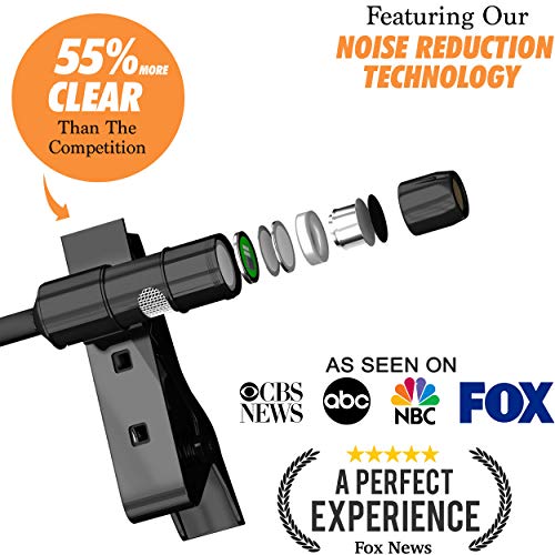 - Fácil de usar por cualquier persona, en cualquier lugar: no se requiere configuración para este micrófono de solapa fácil de usar, que le da a tu grabación una calidad de sonido profesional. Este micrófono lav es todo lo que necesitas para un audio nítido que no silba cuando está inactivo, gracias al condensador omnidireccional. Si estás buscando un micrófono sin interferencia de ruido, nuestra tecnología de reducción de ruido puede hacer el truco. Bloquea los ecos, ya sea que estés filmando en un espacio pequeño o en una cúpula grande.