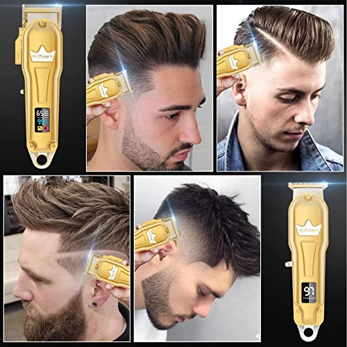 Ufree Hair Clippers for Men + T-Blade Trimmer Kit, Professional Hair Cutting Kit Beard Trimmer Barbers Clippers for Men Women Kids Clipper Set Cordless & LED Display (Gold)