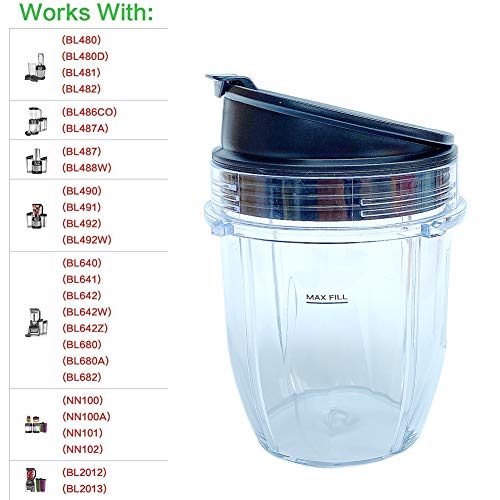 Veterger 2 Pack Replacement Parts Cup with Lid,Compatible with Ninja Blender Auto iQ BL480 BL482 BL642 NN102 BL682 BL450 BL2013 (2 12oz)