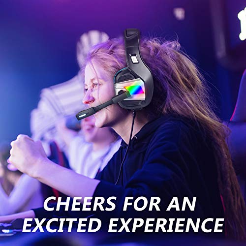 YJY Gaming Headset for PS4 PC Xbox One Over Ear Headphones with Mic LED Light Bass Surround Controller Noise Cancelling Soft Memory Earmuffs for Laptop Mac Nintendo Switch Games (Large)